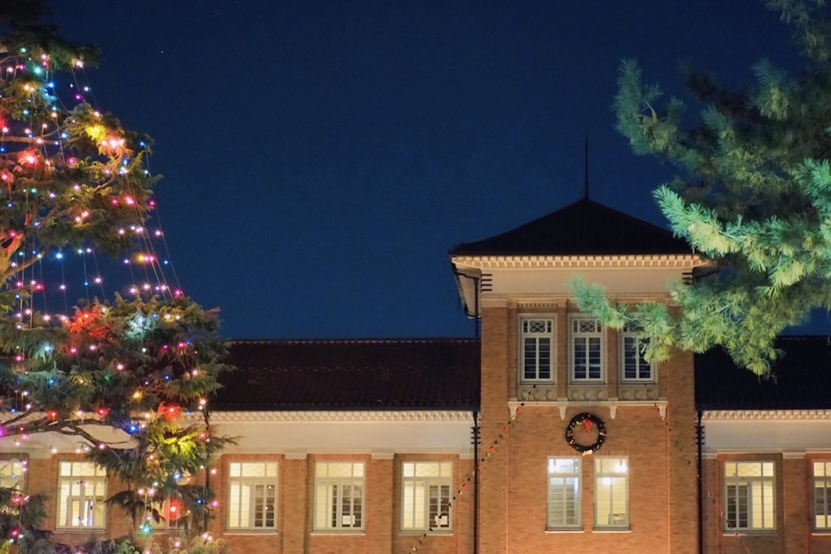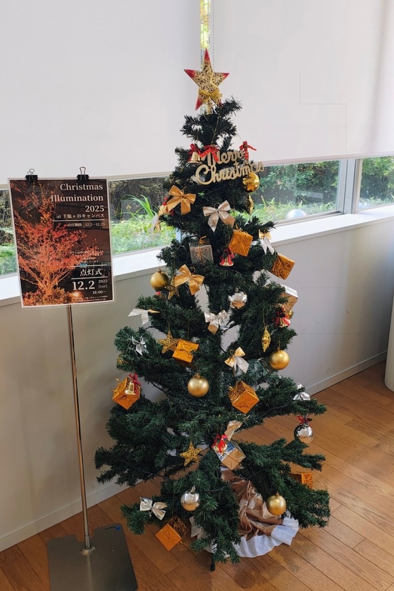 両キャンパスとも、12月25日(木)まで夜間ライトアップが楽しめます。冷え込む季節ですが、灯るツリーを眺めると心が温まります。