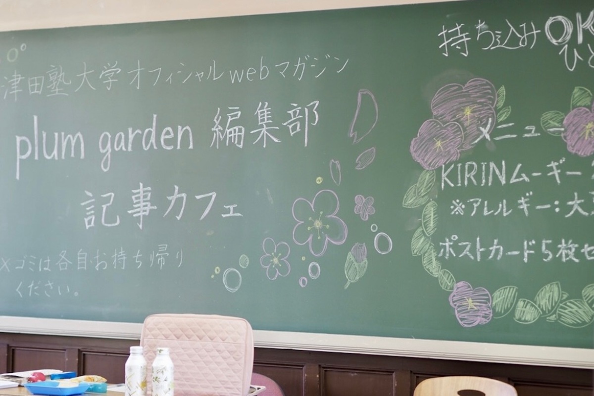 plum garden編集部では、記事をゆっくり楽しんでいただきたいという思いから「記事カフェ」を企画し、過去の記事展示とともに飲み物とポストカードの販売を行いました。商品の発注や記事のPOP作成など、5月頃から編集部員同士で話し合いを重ねながら準備を進めました。