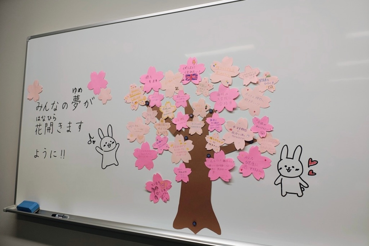 plum garden編集部では「夢企画」として、来場者の方に桜の形の紙へ「夢」を書いていただき、それらを用いて満開の桜の木を作るアートを展示しました。