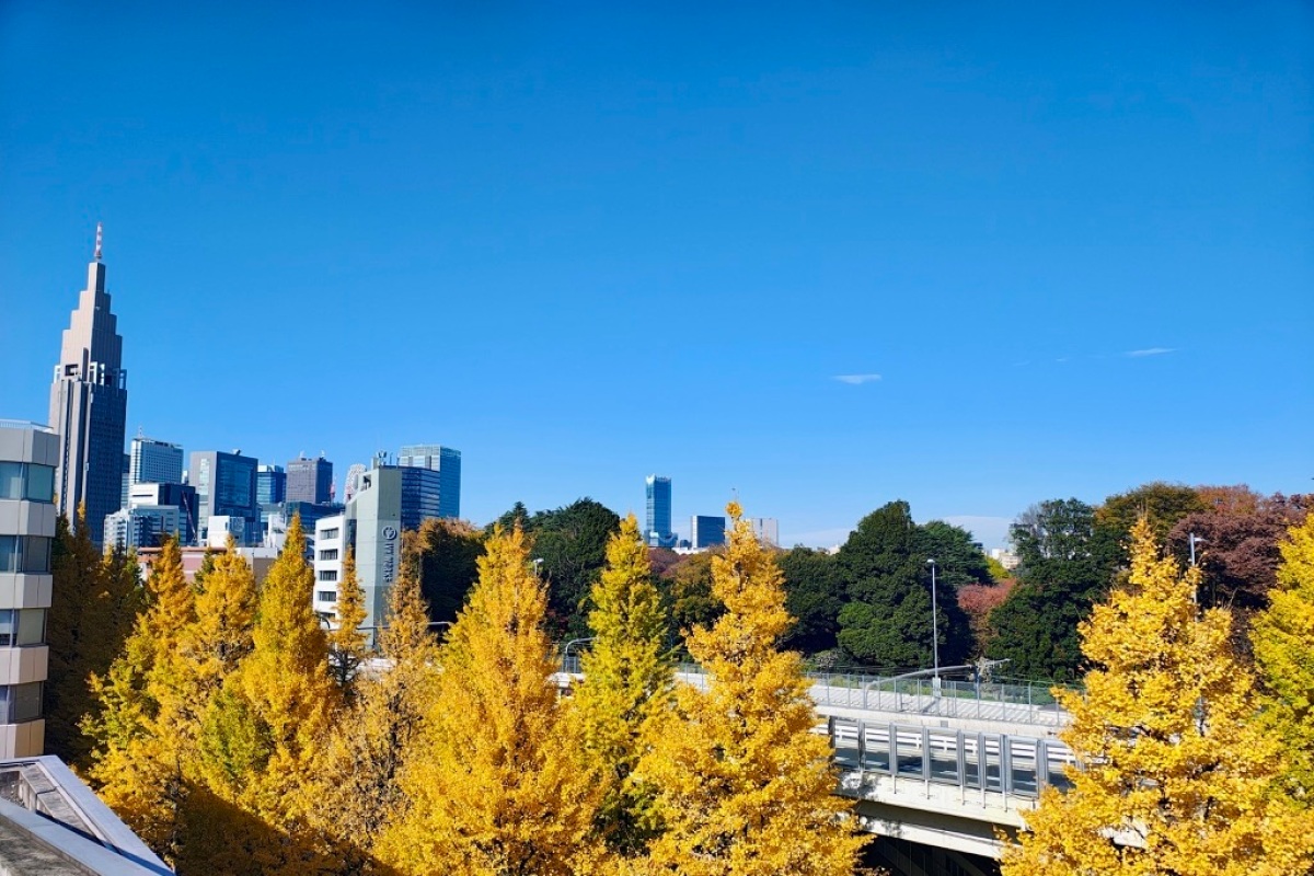 例年、第3タームの期末試験を終え、年度最後の第4タームが始まった頃、津田ヶ谷祭の時期に合わせるように銀杏が見ごろを迎えます。この時期の千駄ケ谷駅前は、銀杏並木を撮影する観光客でにぎわう人気スポットです。