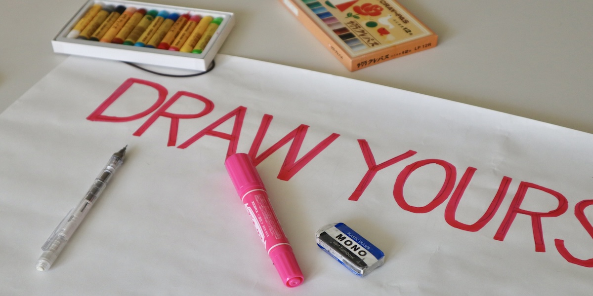 夕方、Draw Yourselfの撤収前、1人の学生がイラストを描いているところに遭遇しました。
