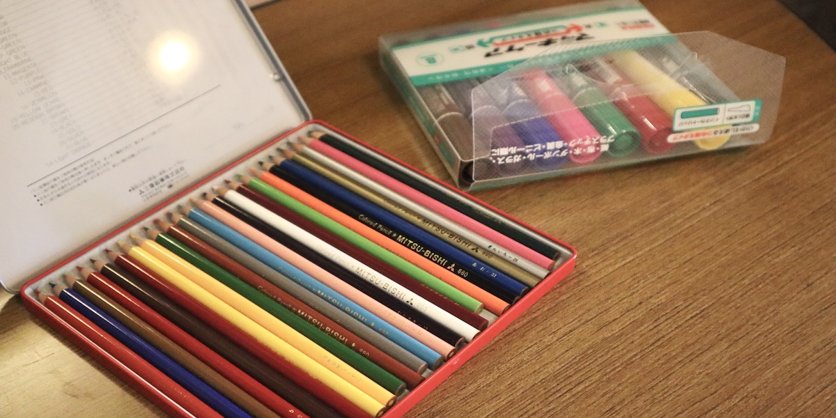 1月19日(月)の朝、ボードに紙を掲示し、色鉛筆とマジックペンを用意して、準備完了です。