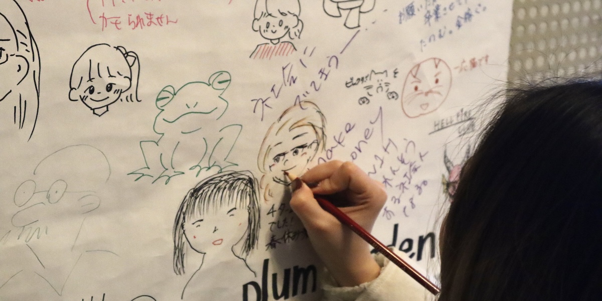 プロジェクト最終日、plum garden編集部員がイラストを描いている姿をキャッチしました。